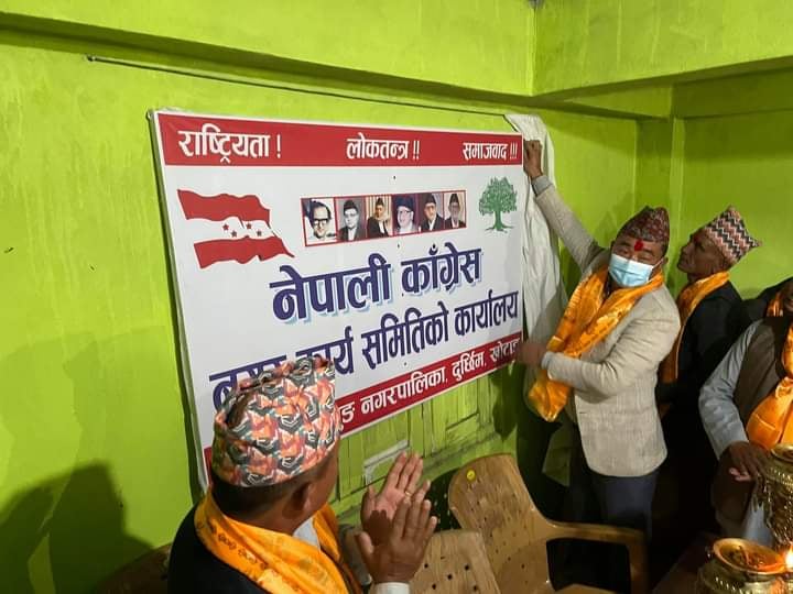 नगरपालिकाको ५ नम्बर वडा दुर्छिममा कार्यलय स्थापनासँगै नगर कार्य समितिको पहिलो पुर्ण बैठक पनि सम्पन्न भएको नगर कार्य समितिका सचिव कमल गिरीले जानकारी दिनुभयो । सचिव गिरीका अनुसार नगर कार्य समिति र नगरपालिका भित्रका ११ वटै वडाका सभापतीहरुहरुलाई कांग्रेसका स्थानीय नेता कार्यक्रताले दोसल्ला लगाएर कार्य सफलताको शुभकामना पनि दिएका छन ।