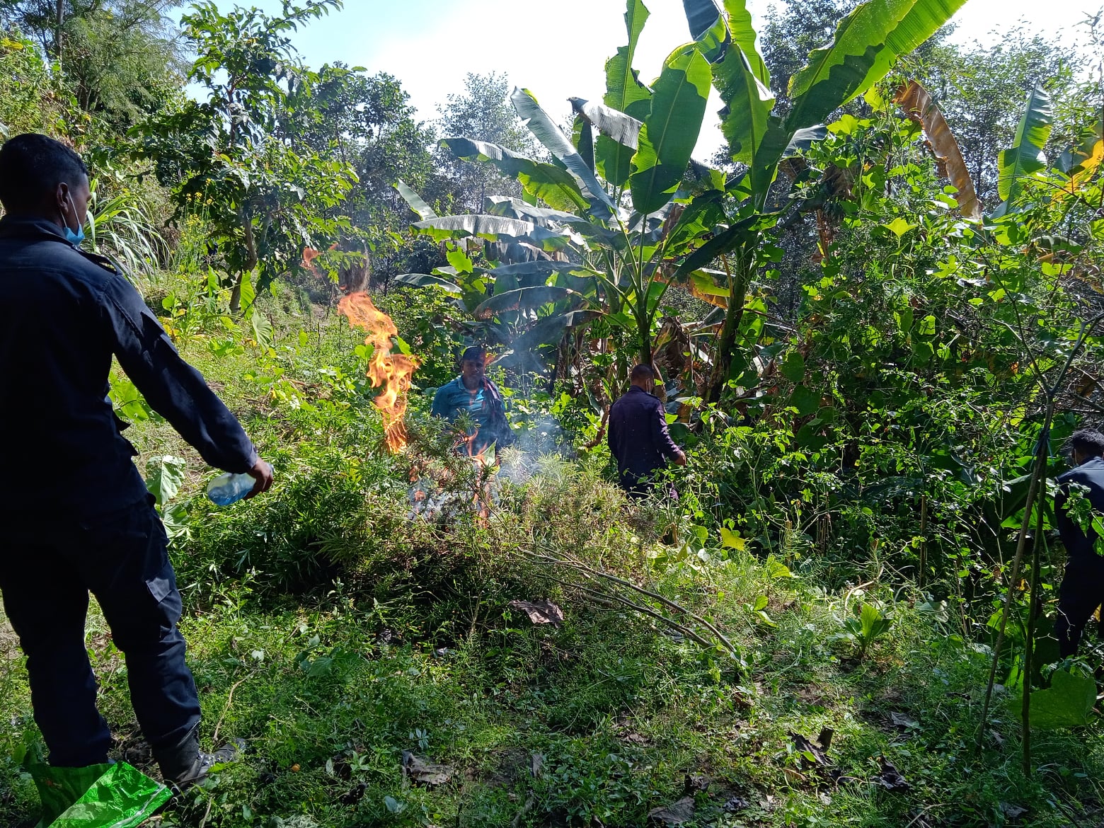 कार्यालय प्रमुख प्रहरी निरीक्षक प्रमोद कार्कीको कमाण्डमा खटिएको ९ जनाको प्रहरी टोलीले बिहान ११ बजे उक्त गाउँका ३ रोपनी जग्गा क्षेत्रफलमा उम्रीएका करीब ५०० गाँजाका बोटहरु फडानी गरेको हो । फडानी गरिएका गाँजाका बोटहरु सोहि स्थानमा जलाएर नष्ट गरिएको कार्यलयले जनाएको छ ।
