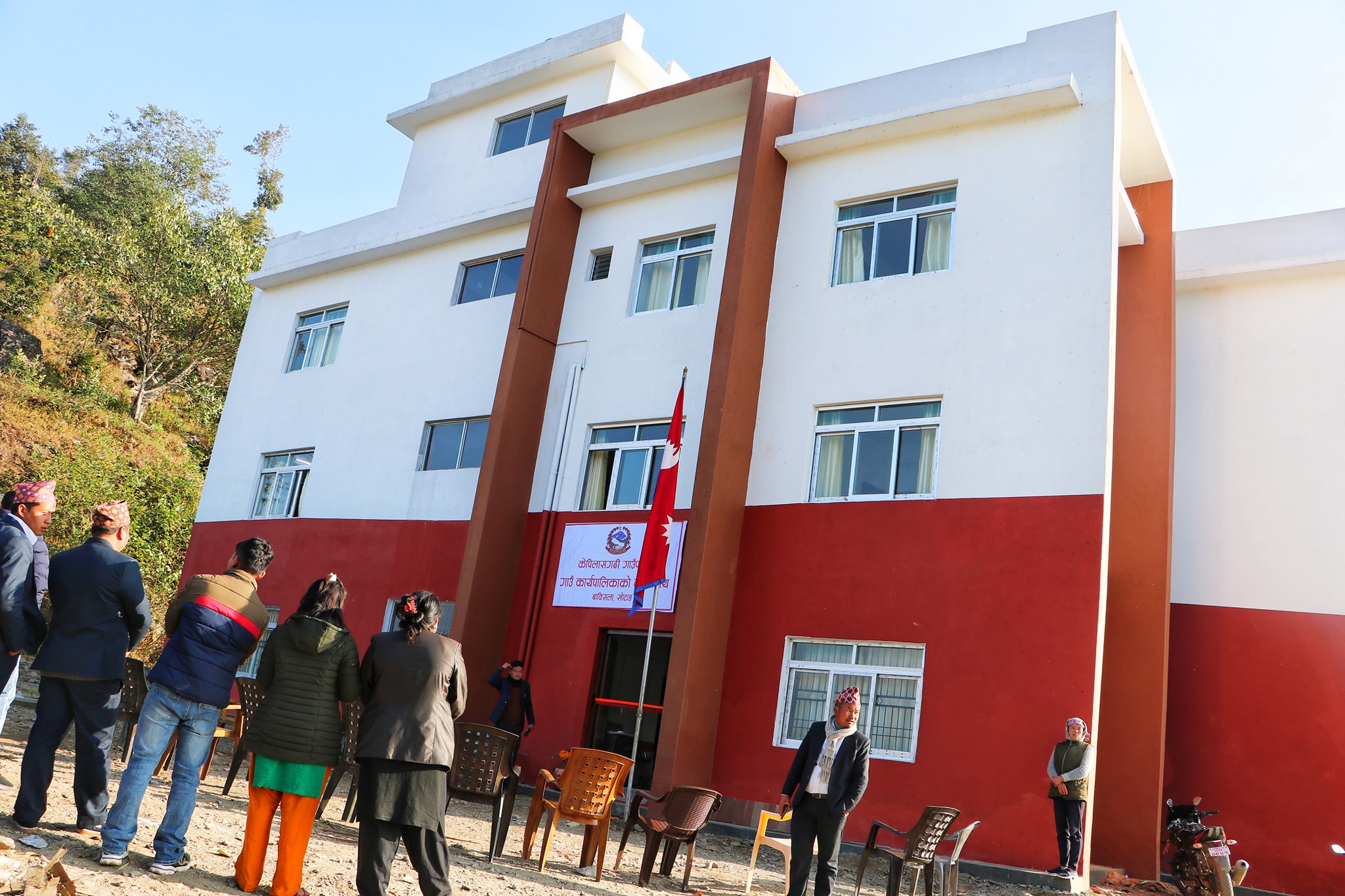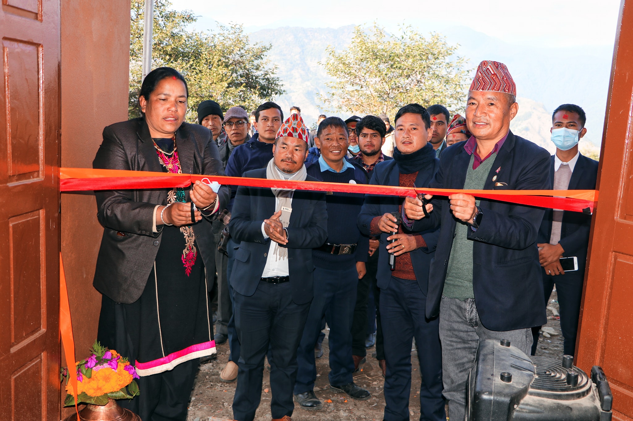 बहुवर्षीय योजना अन्तर्गत निर्माण सम्पन्न भएको भवनको गाउँपालिका अध्यक्ष कृष्णकुमार राई र उपाध्यक्ष हिराकुमारी वन (गिरी) ले सोमबार संयुक्त रूपमा रिबन काटेर उद्घाटन गर्नुभएको छ ।