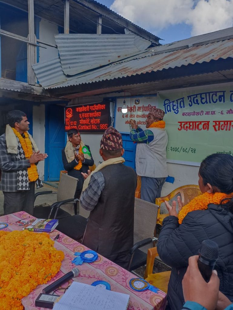 विद्युत उद्घाटन कार्यक्रममा प्रदेश सांसद राईसहित वराहपोखरी गाउँपालिका अध्यक्ष शालिकराम बञ्जारा, उपाध्यक्ष गोमा मगरलगायतको उपस्थिति रहेको थियो ।
