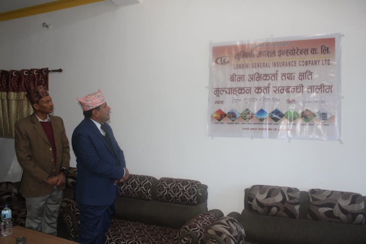 सदरमुकाम दिक्तेलस्थित होटल शुभदिनमा हिजो र आज सञ्चालन भएको तालिममा लुम्बिनी जनरल इन्स्योरेन्स कम्पनी लिमिटेडको प्रधान कार्यालय ज्ञानेश्वर काठमाडौँको सहायक महाप्रबन्धक नवराज तिमल्सिनाले सहजीकरण गर्नुभएको थियो । दिक्तेल रुपाकोट मझुवागढी नगरपालिकाका मेयर दीपनारायण रिजालकाको प्रमुख आतिथ्यता रहेको तालिममा पहिलो दिन हिजो ४० र दोस्रो दिन आज ३८ जना सहभागी भएका थिए ।