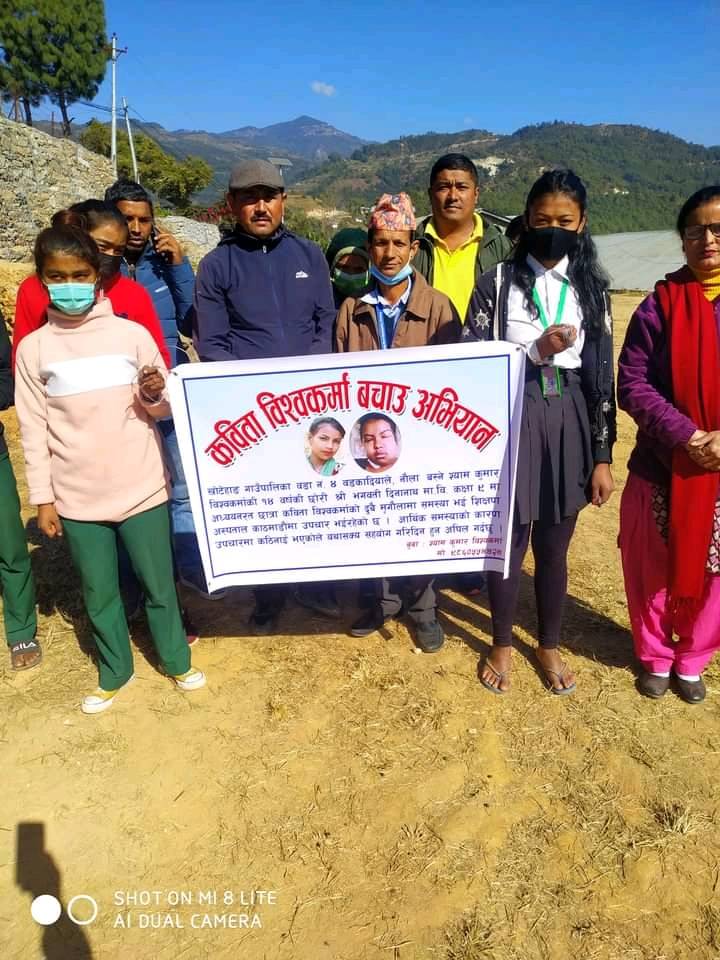 कमजोर आर्थिक अवस्थाका कारण उपचारमा समस्या भएपछि परिवारले इच्छुकलाई आर्थिक सहयोग गर्न अपिल गरेका हुन् । सहयोग गर्न चाहने व्यक्तिले बिरामी बालिका कविताका बुुबा श्यामकुमार विश्वकर्मालाई ९८६०५५४४२४ मा सम्पर्क गर्न वा राष्ट्रिय वाणिज्य बैंक, खोटाङबजार शाखामा उहाँको नाममा रहेको खाता नं. २३८०१००००३६२७०१० मा सोझै रकम जम्मा गर्न सक्नेछन् ।
