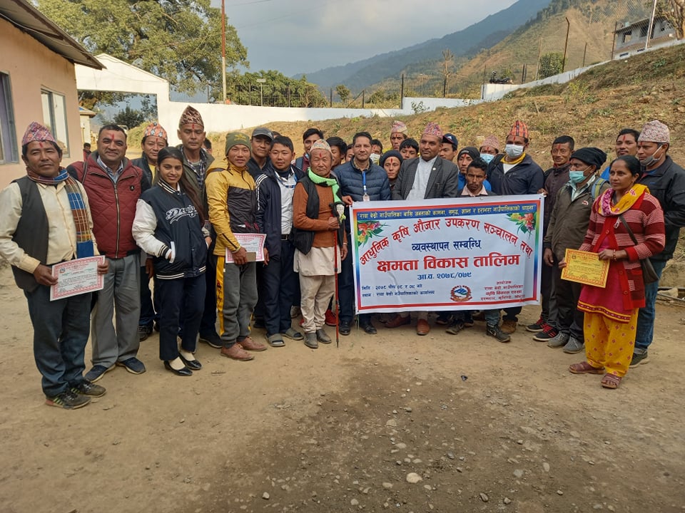 आधुनिक कृषि औजार उपकरण सञ्चालन तथा व्यवस्थापनबारे जानकारी गराई कृषि उपकरणको प्रभावकारी प्रयोगमा सहयोग पु¥याउने उद्देश्यले तालिम दिइएको गाउँपालिकाले जनाएको छ ।