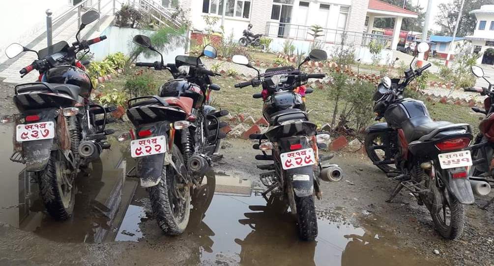 दिक्तेल रुपाकोट मझुवागढी नगरपालिका–५ लफ्याङ वडा कार्यालयको बा २ ब ९४४८ नम्बरको मोटरसाइकल, दोर्पाचिउरीडाँडा वडा कार्यालयको बा २ ब ९३५५ नम्बरको मोटरसाइकल, केपिलासगढी गाउँपालिका–५ सप्तेश्वर वडा कार्यालयको को २ ब १३६८ नम्बरको मोटरसाइकल र लोकसेवा आयोगको कार्यालय खोटाङको प्रदेश ३–०२–००१ ब १५३० नम्बरको मोटरसाइकल नियन्त्रणमा लिइएको जिल्ला प्रहरी कार्यालयका सूचना अधिकारी एवम् प्रहरी निरीक्षक सागर शाहले जानकारी दिनुभयो ।