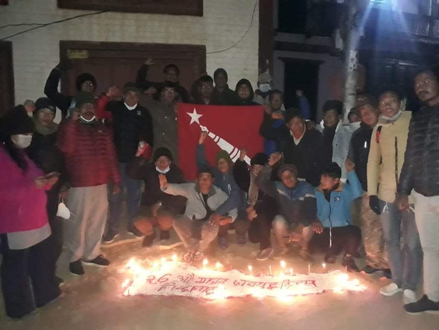 खोटाङ, फागुन १ । आज २७ औँ जनयुद्ध दिवस खोटाङमा दीप प्रज्वलन गरेर मनाइएको छ । नेकपा माओवादी केन्द्र निकट विद्यार्थी संगठन अनेरास्ववियु क्रान्तीकारी खोटाङले जिल्ला सदरमुकाम स्थीत त्रिवेणिचोकमा दीप प्रज्वलन गरेर जनयुद्ध दिवस मनाएको हो ।