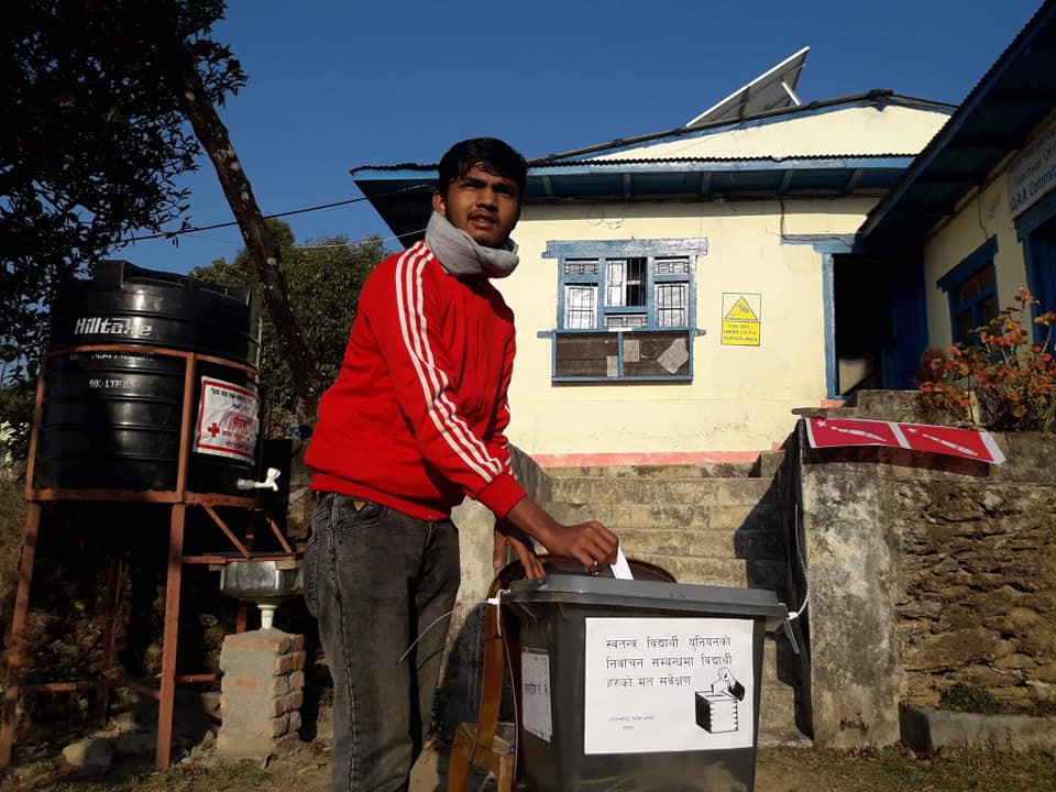 खोटाङ, फागुन ९ । नेकपा एमाले निकट विद्यार्थी संगठन अनेरास्ववियु खोटाङले स्ववियुको नमुना निर्वाचन गरेको छ । लामो समयदेखि हुन नसकेको स्ववियु निर्वाचन आवश्यक ‘छ’ वा ‘छैन’ भन्ने बुझ्न अनेरास्ववियुले दिक्तेल बहुमुखी क्याम्पसमा नमुना निर्वाचन गरेको हो ।
