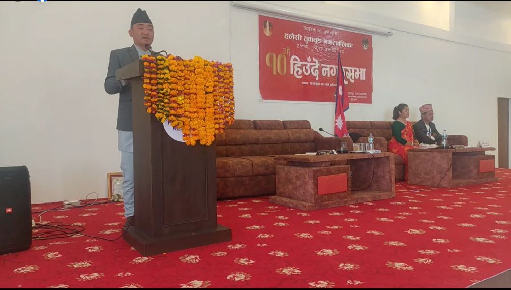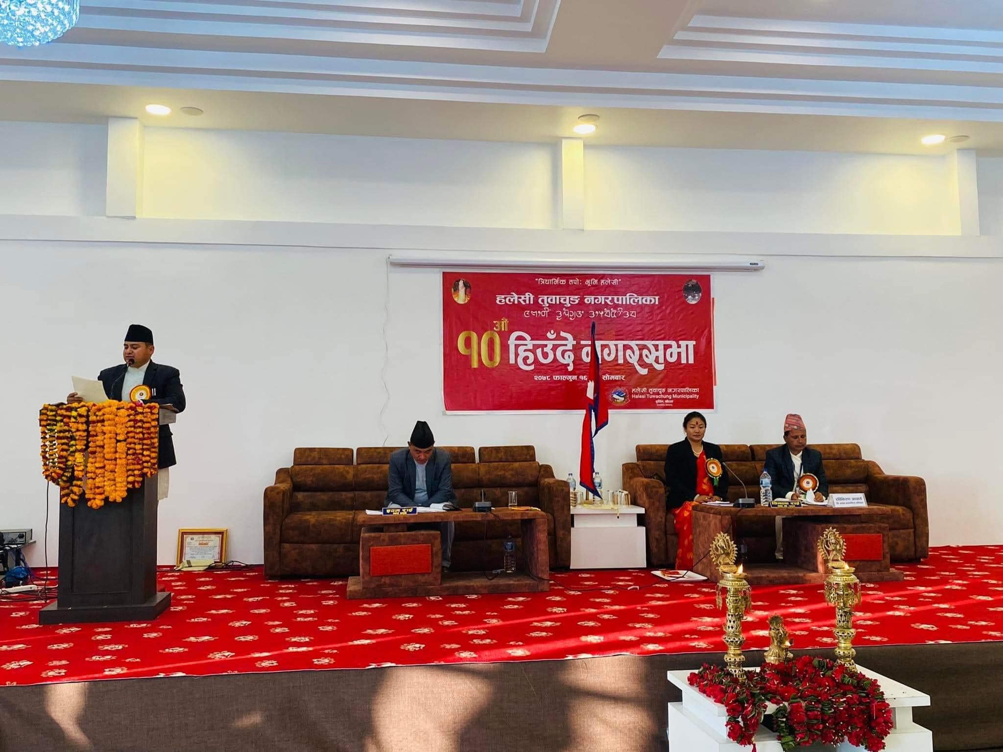 नगर सभालाई सम्बोधन गर्दै नगरपालिकाका मेयर इवन राईले हलेसी तुवाचुङ नगरपालिका हरेक क्षेत्रमा पहिलो भएको बताउनुभयो । नगरपालिकाले विकासका हरेक आयोजनाहरूमा मितव्ययीता र पारदर्शिता अपनाएको मेयर राईको भनाइ थियो ।