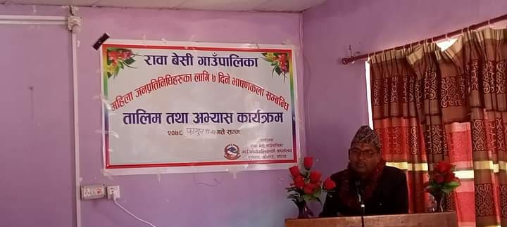 कार्यक्रममा रावाबेसी गाउँपालिकाका महिला जनप्रतिनिधिहरुको सहभागिता रहेको थियो । कार्यक्रमको सहजिकरण घनश्याम ढकालले गर्नु भएको हो । कार्यक्रममा समय र स्थान अनुसार भाषण कसरी गर्न सकिन्छ लगायतका विषयको सहजिकरण भएको गाउँपालिकाले जनाएको छ ।