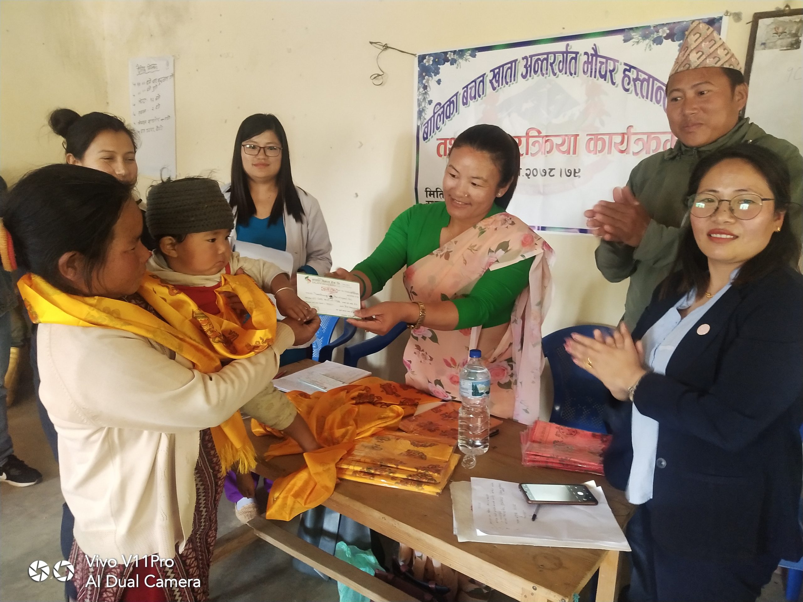 नगरपालिकाको ७ नम्बर वडा महादेवस्थानका बालिकाको नाममा खोलिएको खातामा जम्मा गरिदिएको रकमको भौचर आज नगरपालिकाले सम्बन्धित बालिकाका आमाहरुलाई हस्तान्तरण गरेको छ । भौचर बुझ्दै बालिकाका आमाहरुले नगरपालिकाको सानो कामले आफुहरुलाई ठुलो सहयोग पुग्ने बताएका छन् । नगरपालिकाले वार्षिक रुपमा ४ हजारका दरले तीन वर्षमा १२ हजार रकम जम्मा गरिदिने र त्यसमा घरपरिवारले पनि सकेको रकम जम्मा गर्ने आमाहरुको भनाई छ । यसबाट छोरीहरुको भविष्य उज्वल बन्ने आमाहरुको विश्वास छ ।