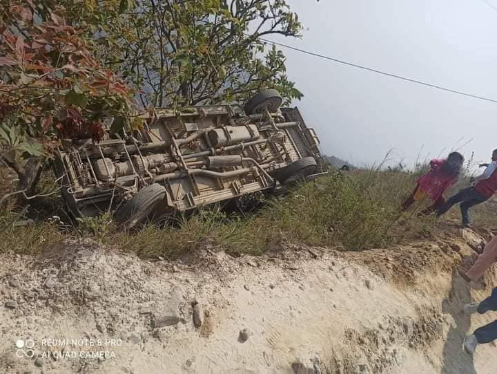 धरानजादै गरेको र्फोस गाडि आफै अन्यन्त्रित भइ सडकबाट करीब ५ मिटर तल खसकेको थियो । जिल्ला प्रहरी कार्यालय उदयपुरका सूचना अधिकारी (डिएसपी) वेद प्रसाद गौतमका अनुसार गाडिमा १४ जना सवार थिए । जसमा तीन जना गम्भिर घाइते भएका छन् भने अरुको अवस्था सामान्य छ ।