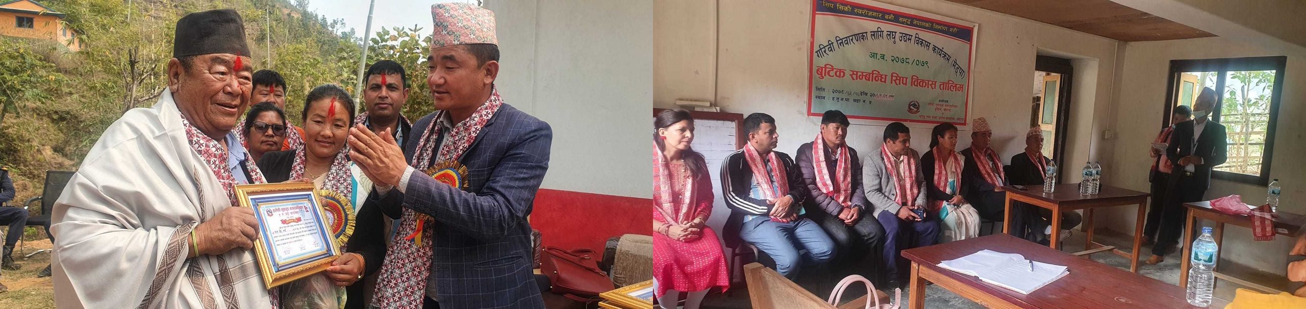हलेसी तुवाचुङ नगरपालिका–५ दुर्छिममा महिलालाई बुटिक सम्बन्धी सीप विकास तालिम प्रदान गर्न थालिएको छ । गरिबी निवारणका लागि लघु उद्यम विकास कार्यक्रमअन्तर्गत नगरपालिका र घरेलु तथा साना उद्योग कार्यालय खोटाङको संयुक्त आयोजनामा एक महिने तालिम सुरु भएको हो । नवकिरण सेवा समाज, दुर्छिमको हलमा आजदेखि सुरु भएको तालिमको नगरपालिकाका मेयर इवन राई र उपमेयर विमला राईले संयुक्त रूपमा उद्घाटन गर्नुभएको हो ।
