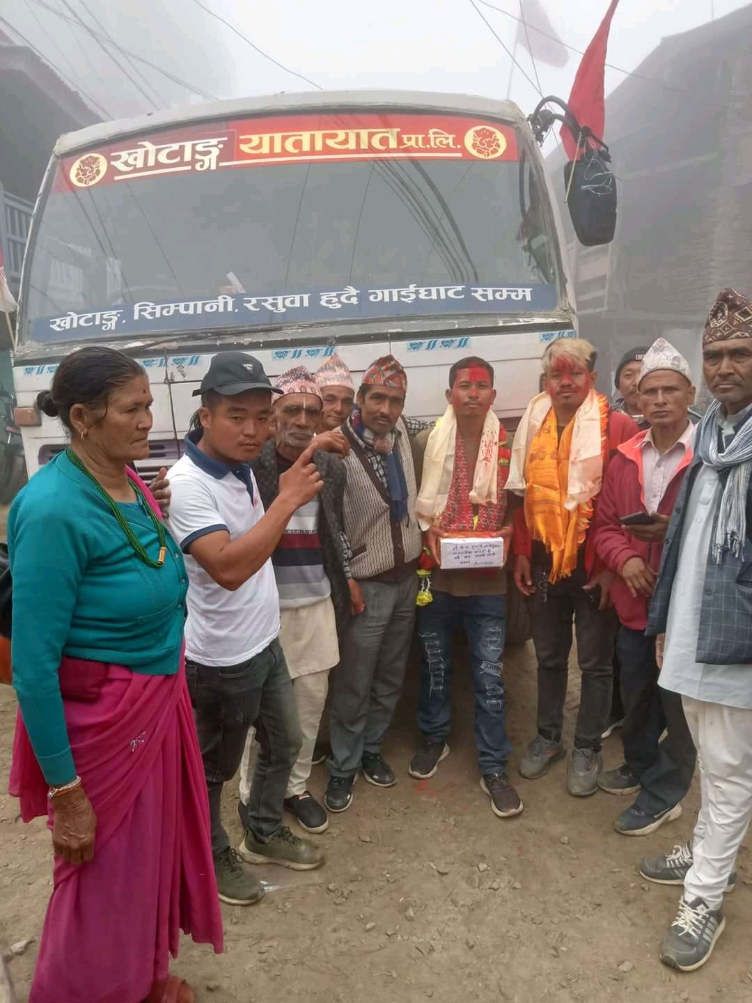 उदयपुरको सदरमुकाम गाईघाटदेखि छुटेको बस खोटेहाङ गाउँपालिका–७ खोटाङ बजार हुँदै चिसापानी बजारसम्म पुगेको हो । चालक प्रकाश चौधरीले पहिलोपटक उक्त स्थानमा बस पु-याउनुभएको हो । गाउँमा बस पुगेपछि स्थानीयले हर्षोल्लासका साथ बसका चालक चौधरी र सहचालक पर्शुराम श्रेष्ठलाई अबिर र खादा लगाइदिएर स्वागत गरेका थिए ।