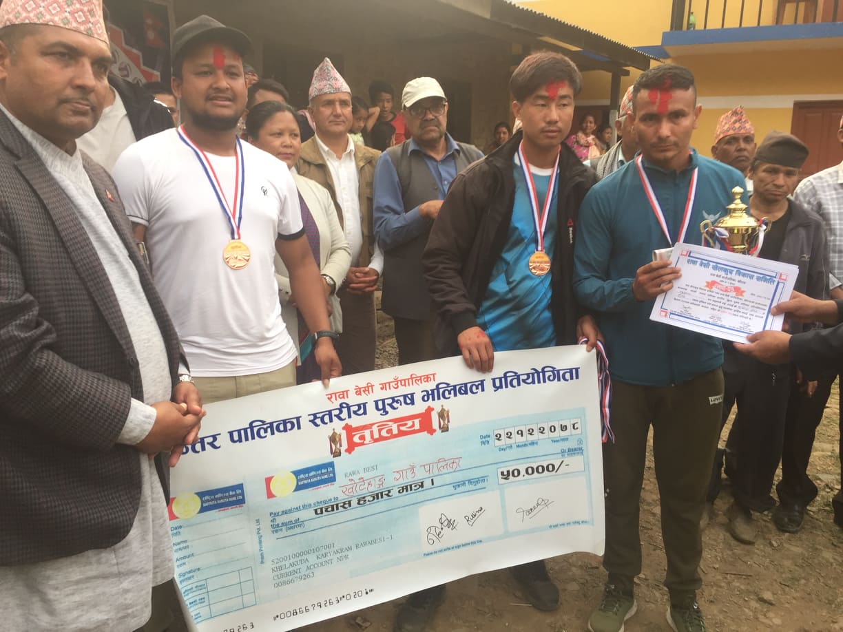 आइतबारदेखि सुरु भएको प्रतियोगितामा ९ टोलीको सहभागिता रहेको थियो । प्रतियोगितामा पहिलो, दोस्रो, तेस्रो र सान्तवना हुने समूह तथा विधागततर्फका उत्कृष्ट खेलाडीहरूलाई रावाबेँसी गाउँपालिकाका अध्यक्ष लिलानाथ निरौला, उपाध्यक्ष समला राई र ६ वटै वडाका वडाध्यक्षहरूले पुरस्कार वितरण गरेका थिए ।