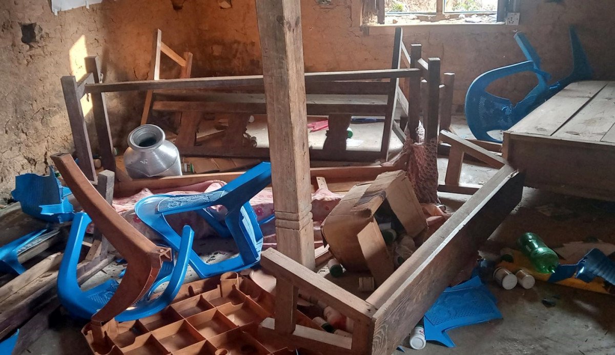 तोडफोडबाट प्लास्टिकका १७ वटा कुर्सी, काठका तीन वटा बेन्च, प्लास्टिकको एउटा वटा टेबल, एक थान ह्वाइटबोर्ड, भइपरी आउँदा प्रयोग गर्न राखिएको दुई वटा हेलमेट, दुई थान पावर सकेट लगायत सामानमा क्षति पुगेको वडाध्यक्ष भलाराज राईले बताउनुभयो ।