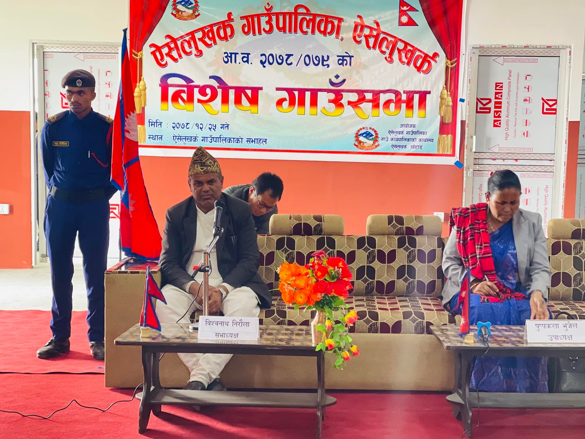 चैत मसान्तभित्र निर्माण सम्पन्न गर्ने गरी गाउँपालिका र निर्माण कम्पनीबीच सम्झौता भएकोमा निर्माण कम्पनीले सम्झौता मिति अगावै निर्माणको काम सकेर सभाहल गाउँपालिकालाई हस्तान्तरण गरेको हो । सभाहलको शुक्रबार गाउँपालिकाका अध्यक्ष विश्वनाथ निरौला र उपाध्यक्ष पुष्पकला भुजेलले संयुक्त रूपमा उद्घाटन गर्नुभयो ।
