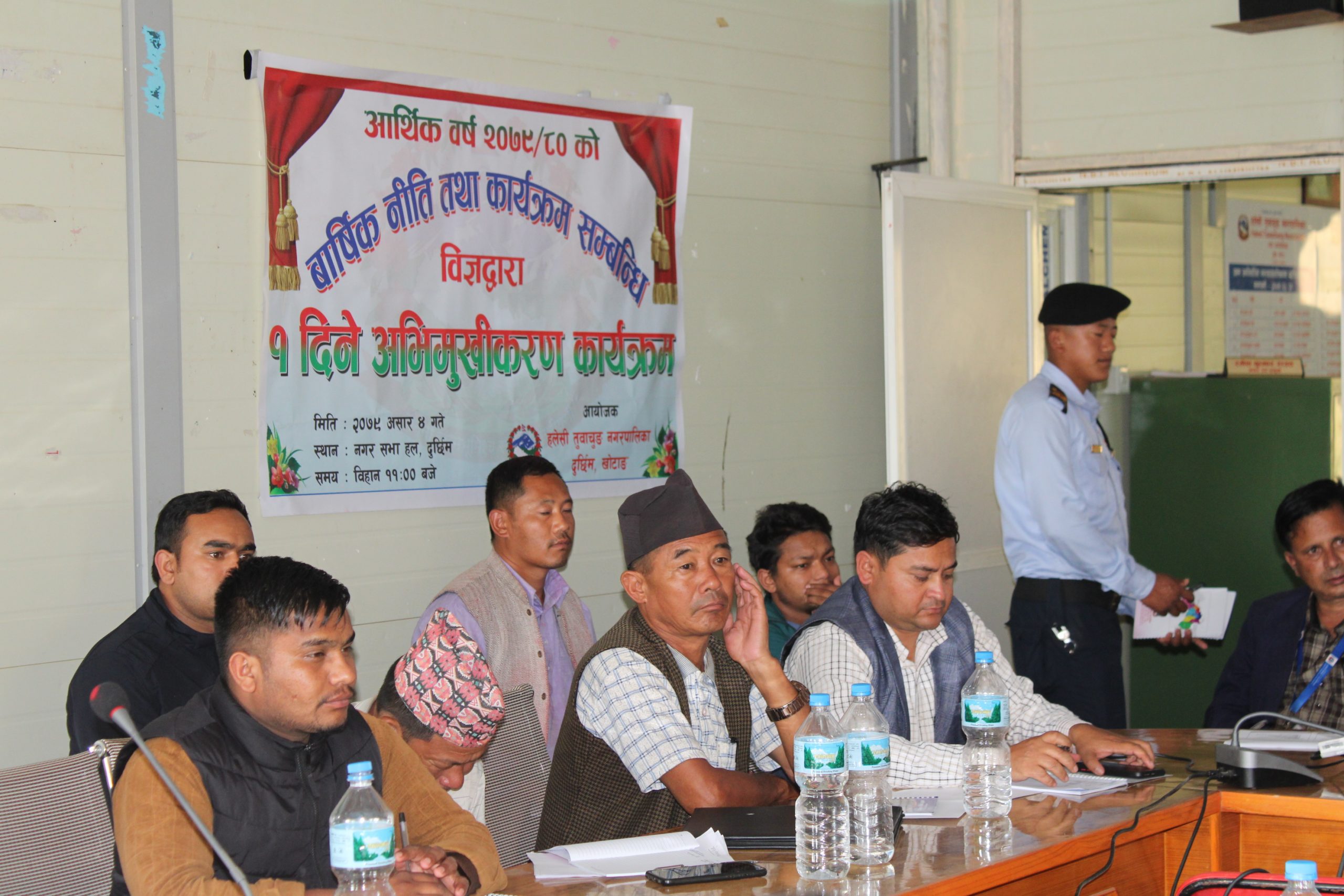 महर्जचनले भर्चुअल माध्यमबाट अभिमुखिकरण गरेपश्चात नगरपालिकाका प्रमुख विमला राई, उप–प्रमुख रमेश कुमार राउत र निमित्त प्रमुख प्रशासकीय अधिकृत रवि किरण आचर्यले पनि अन्य जनप्रतिनिधिलाई भौतिक उपस्थितीमा अभिमुखिकरण गर्नुभएको नगरपालिकाका प्रवक्ता एवं वडा नम्बर ७ का वडाध्यक्ष कमल गिरीले जानकारी दिनुभयो । नीति तथा कार्यक्रममा के कस्ता कार्यक्रमहरु समेट्ने, कस्ता कार्यक्रमलाई प्रथामिकता दिने लगायतका विषयमा तालिम प्रदान भएको प्रवक्ता गिरीले बताउनुभयो ।