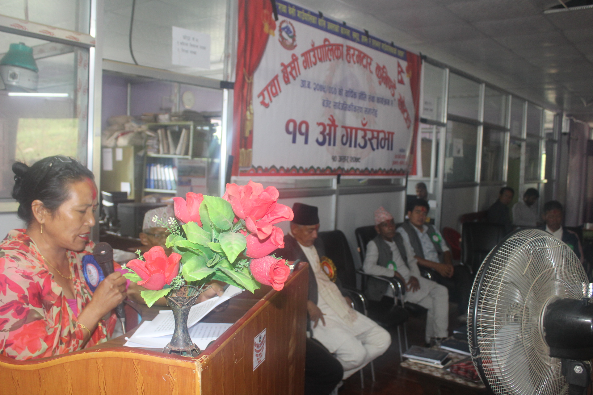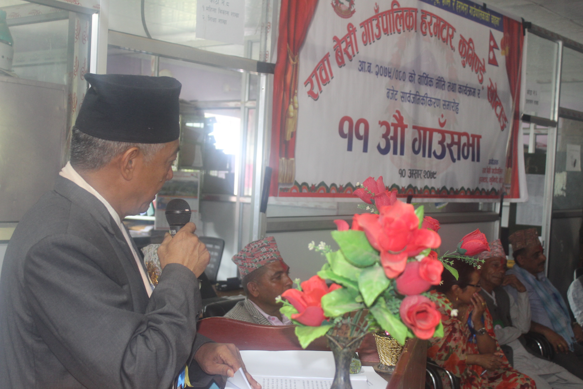 खोटाङ, असार १० । रावा बेसी गाउँपालिकाले आर्थीक वर्ष २०७९/८० का लागि ३८ करोड ३९ लाख २ हजार २३ रुपैयाँको बजेट ल्याएको छ । गाउँपालिका केन्द्र हरमटारमा आज सम्पन्न ११ औँ गाउँसभाबाट गाउँपालिका अध्यक्ष फट्टिक कुमार श्रेष्ठले पेस गर्नुभएको निती तथा कार्यक्रम र उपाध्यक्ष कौशिला कुमारी गुरुङले पेस गर्नुभएको उक्त बजेट पारित भएको हो ।