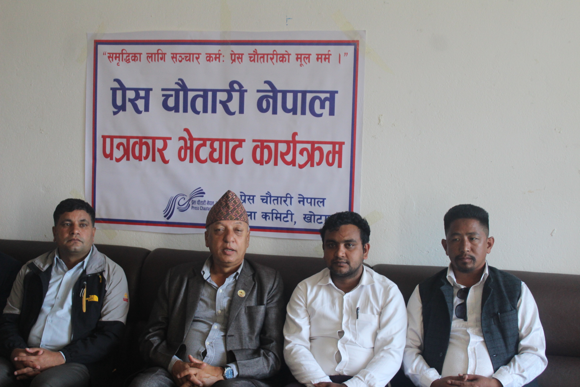 खोटाङ, साउन २५ । नेकपा एमालेका स्थायी कमिटि सदस्य राजेन्द्र गौतमले आगामि चुनावमा नेकपा माओवादीसँग गठबन्धन हुनसक्ने बताउनुभएको छ । नेपाल प्रेस चौतारी खोटाङले बुधबार (आज) आयोजना गरेको पत्रकार भेटघाट कार्यक्रममा उहाँले यस्तो बताउनुभएको हो ।