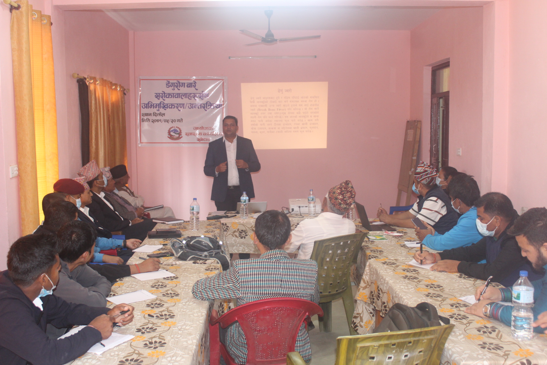 स्वास्थ्य कार्यालयका प्रमुख पुण्यप्रसाद सिक्देलको अध्यक्षतामा भएको कार्यक्रममा जिल्ला समन्वय समितिका प्रमुख सनबाहदुर राई, दिक्तेल रुपाकोट मझुवागढी नगरपालिकाका प्रमुख तिर्थराज भट्टराई, प्रमुख जिल्ला अधिकारी सुर्यप्रसाद सेडाई, जिल्ला प्रहरी कार्यालयका प्रमुख (डिएसपी) मञ्जिल मुकारुङ, रेडक्रसका मन्त्री छत्र बजिमय, जिल्ला अस्पतालका प्रमुख डक्टर नितु लामा, सबै पालिकाका स्वास्थ्य शाखा प्रमुख एवं प्रतिनिधिहरुको उपस्थिती रहेको थियो । कार्यत्ररममा डेंगु र स्क्रब टाइफसको अवस्था र बच्न सक्ने उपायहरुको विषयमा सहजिकरण स्वास्थ्य कार्यालयका कार्यक्रम अधिकृत जीवन चौलागाईले गर्नुभएको थियो ।