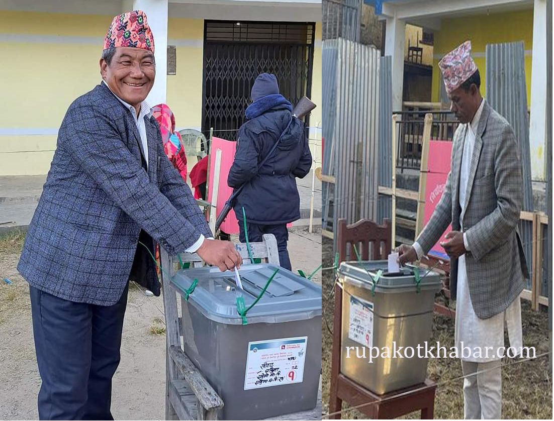 नेकपा एमालेका उम्मेद्वार विशाल भट्टराईले खोटेहाङ गाउँपालिका–७ खोटाङ बजारस्थित भगवती दिननाथ माध्यमिक विद्यालयको मतदान केन्द्र (ख) बाट मतदान गर्नुभएको छ । बाम लोकतान्त्रीक गठबन्धनका साझा उम्मेद्वार नेकपा माओवादी केन्द्रका रामकुमार राई (पासाङ)ले साकेला गाउँपालिका–२ साकेला माध्यमिक विद्यालयको मतदान केन्द्र (ख) बाट मतदान गर्नुभएको छ ।