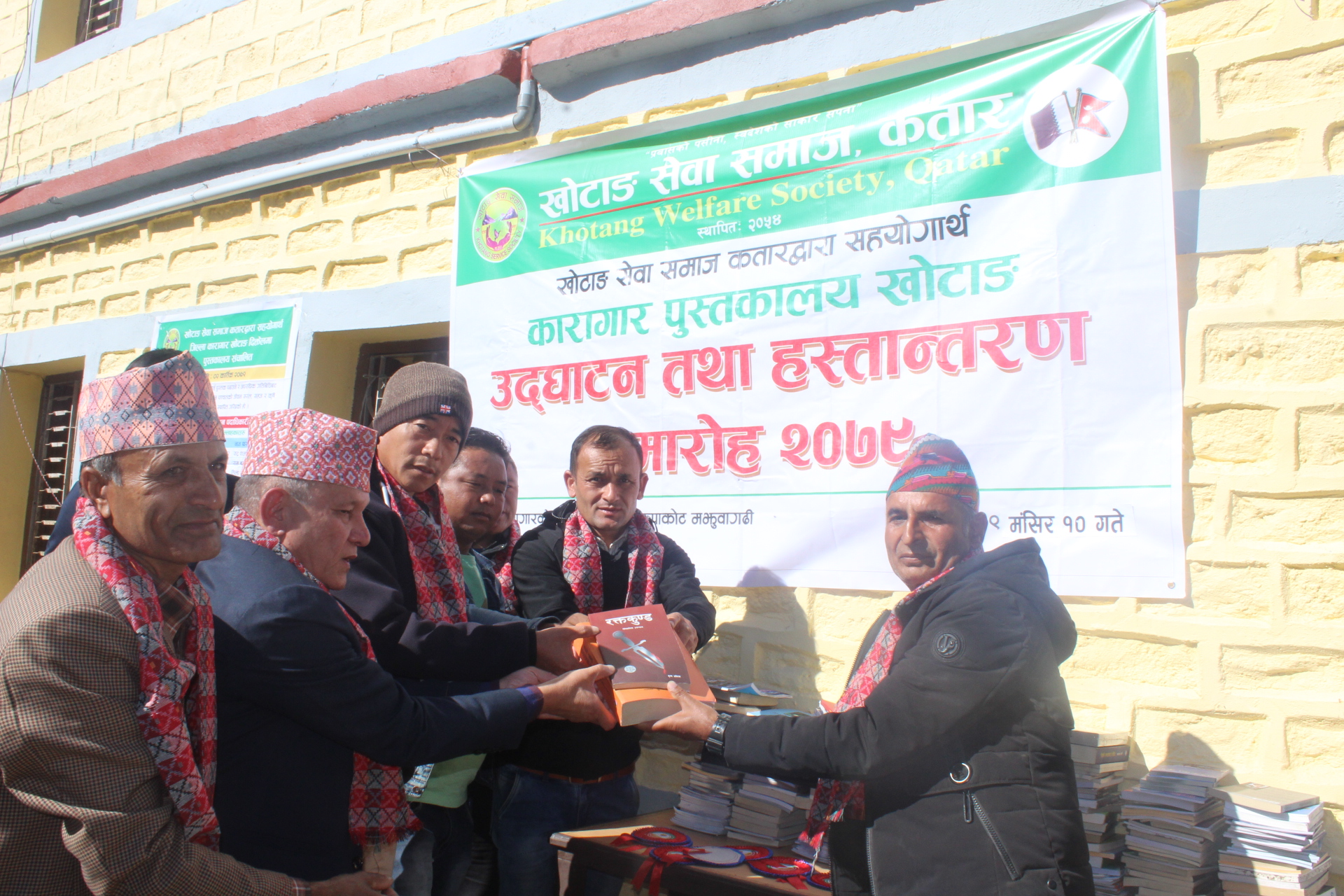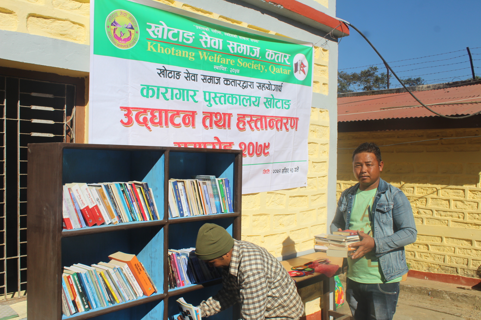 खोटाङ, मङ्सिर १० । खोटाङ सेवा समाज कतारले जिल्ला कारागार खोटाङलाई पुस्तक सहयोग गरेको छ । कारागारमा जेल जीवन बिताइरहेका कैदिबन्दीलाई लक्षित गर्दै सेवा समाजले विभिन्न प्रकारका पुस्तकहरु सहयोग गरेको हो । कारागारमा यस अघि नै पुस्तकालय स्थापन भइसकेको छ । जसमा आवश्यक पुस्तकसँगै अन्य समाग्री सेवा समाजले कारागारलाई सहयोग गरेको बताइएको छ ।