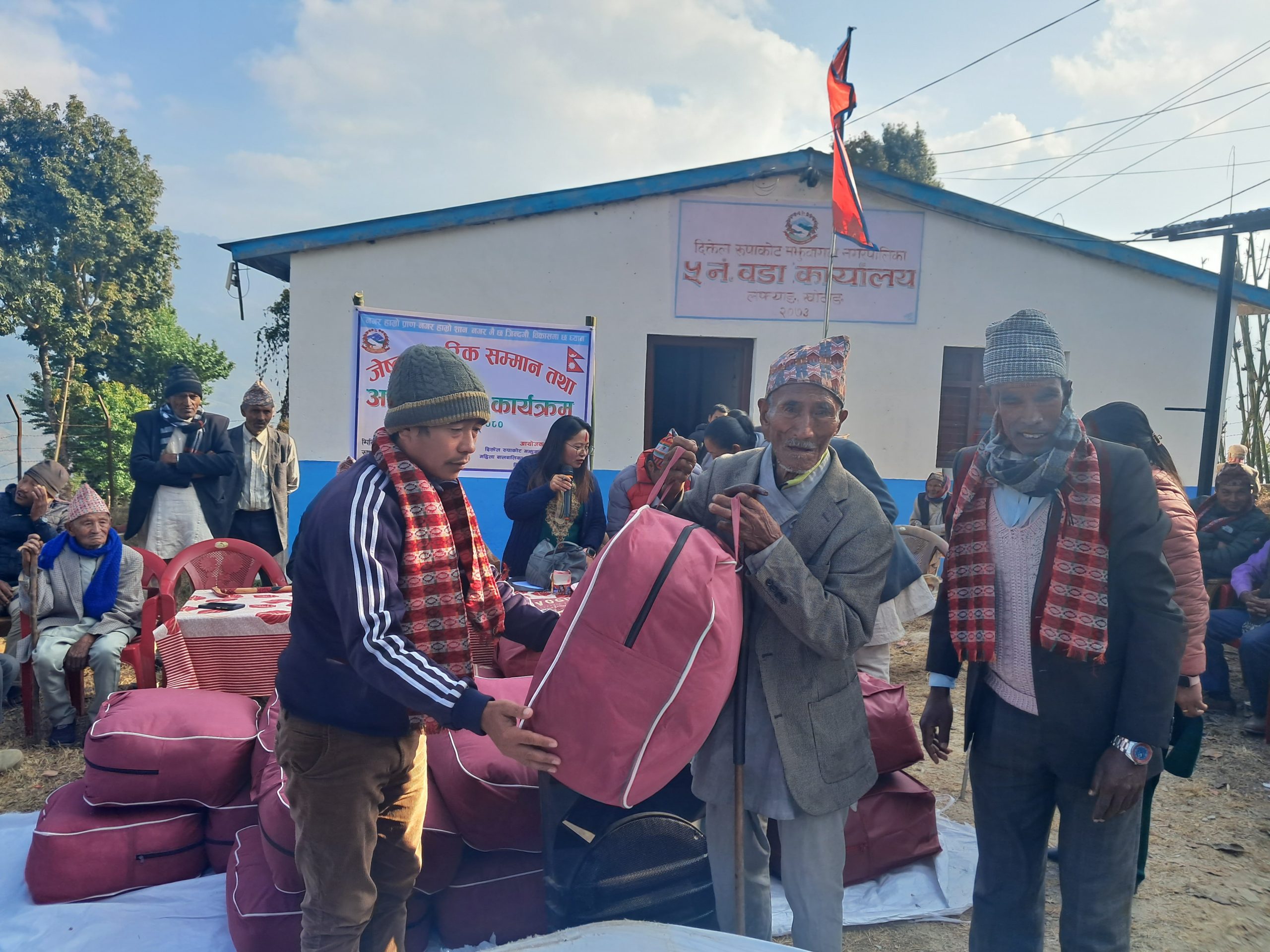 लफ्याङकाको वडा कार्यालयमा भएको कार्यक्रममा उपमेयर राईसँगै, ज्येष्ठ नागरिकसँग खोटाङका अध्यक्ष एवं जिल्ला समन्वय समिति खोटाङका सदस्य दुर्गा प्रसाद घिमिरे र लफ्याङका वडाध्यक्ष दिनेश घिमिरेले सिरक प्रदान गरेर बृद्धबृद्धालाई सम्मान गर्नुभएको हो ।