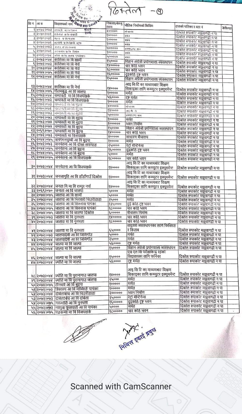 बेरुजु रहेका उक्त ४६७ योजनाहरु यहि पुस २७ गते भित्र फछ्र्यौट गर्न कार्यालले विद्यालयलाई पत्रसमेत काटेको छ । बेरुजु भएका योजनाहरु एउटै विदालयका ७ वटासम्म रहेका छन् ।