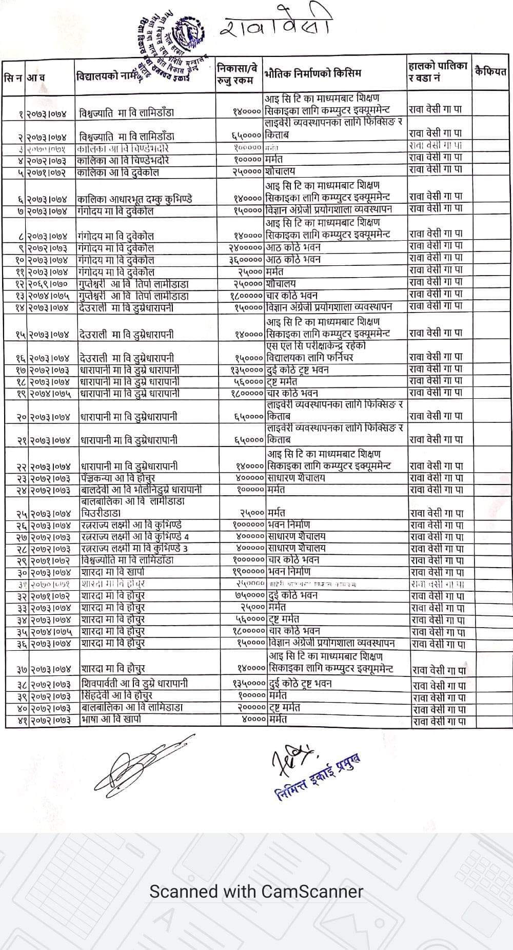 हेर्नुहोस विद्यालय र बेरुजु योजना