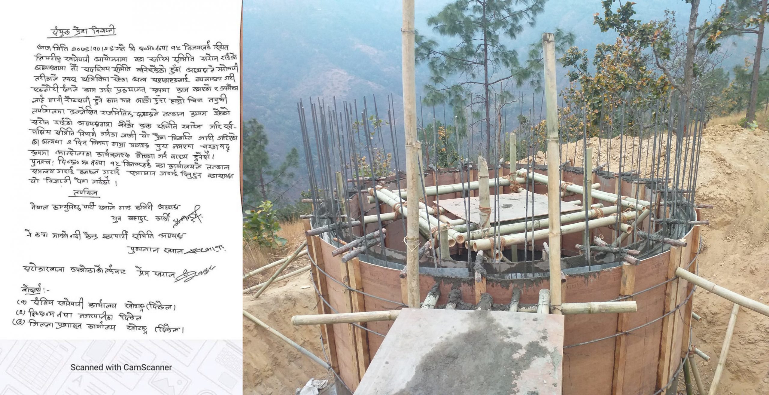 एमाले वडा कमिटि अध्यक्ष एबं वडासदस्य युवबहादुर कार्की, नेकपा माओवादी केन्द्रका वडा कमिटि अध्यक्ष पुष्पलाल खनाल र सरोकारवालाकोतर्फबाट प्रेम खनालले संयुक्त विज्ञाप्ती जारी गर्दै सरोज राई अध्यक्ष रहेको लिफ्टिङ खानेपानी आयोजना उपभोक्ता समितिलाई खारेज गर्दै सर्वपक्षीय समिति पुःर्नगठनको माग गरेका छन् । निर्माण उपभोक्ता समितिका अध्यक्ष राईले अन्य सदस्यलाई बेवास्ता गर्दै एकलौटी काम गरेको, प्रकृयागत रुपमा काम नभएको, उपभोक्तालाई हानीनोक्सानी हुने काम गरिएको भन्दै वर्तमान समितिलाई खारेज गर्दै सर्वपक्षीय समिति पुःर्नगठनको माग गर्नुपरेको विज्ञाप्तीमा उल्लेख छ । आयोजनाका विषयमा समझदारी कायम नभए क्षती वडाका नागरिकलाई पुग्ने छ ।