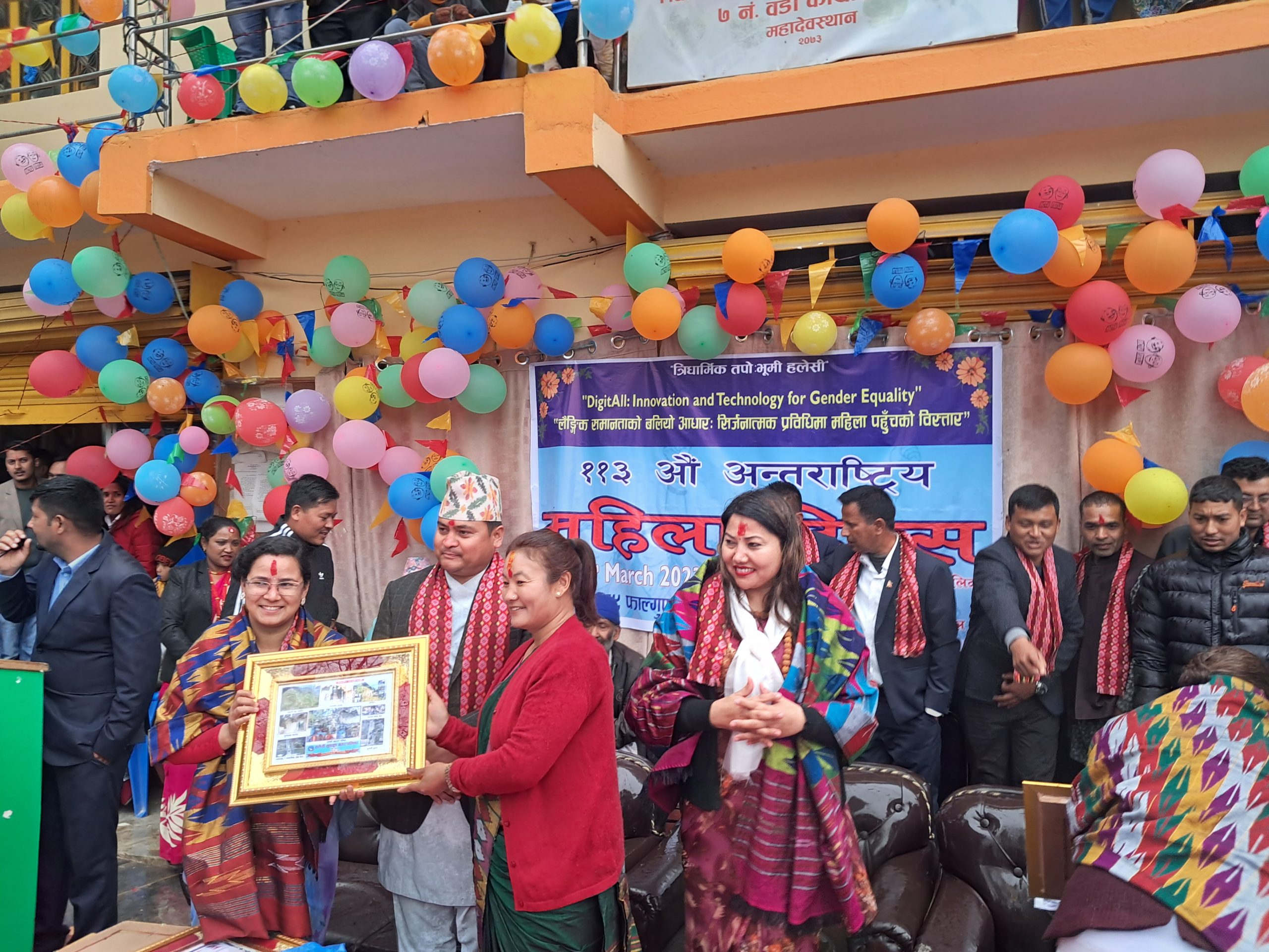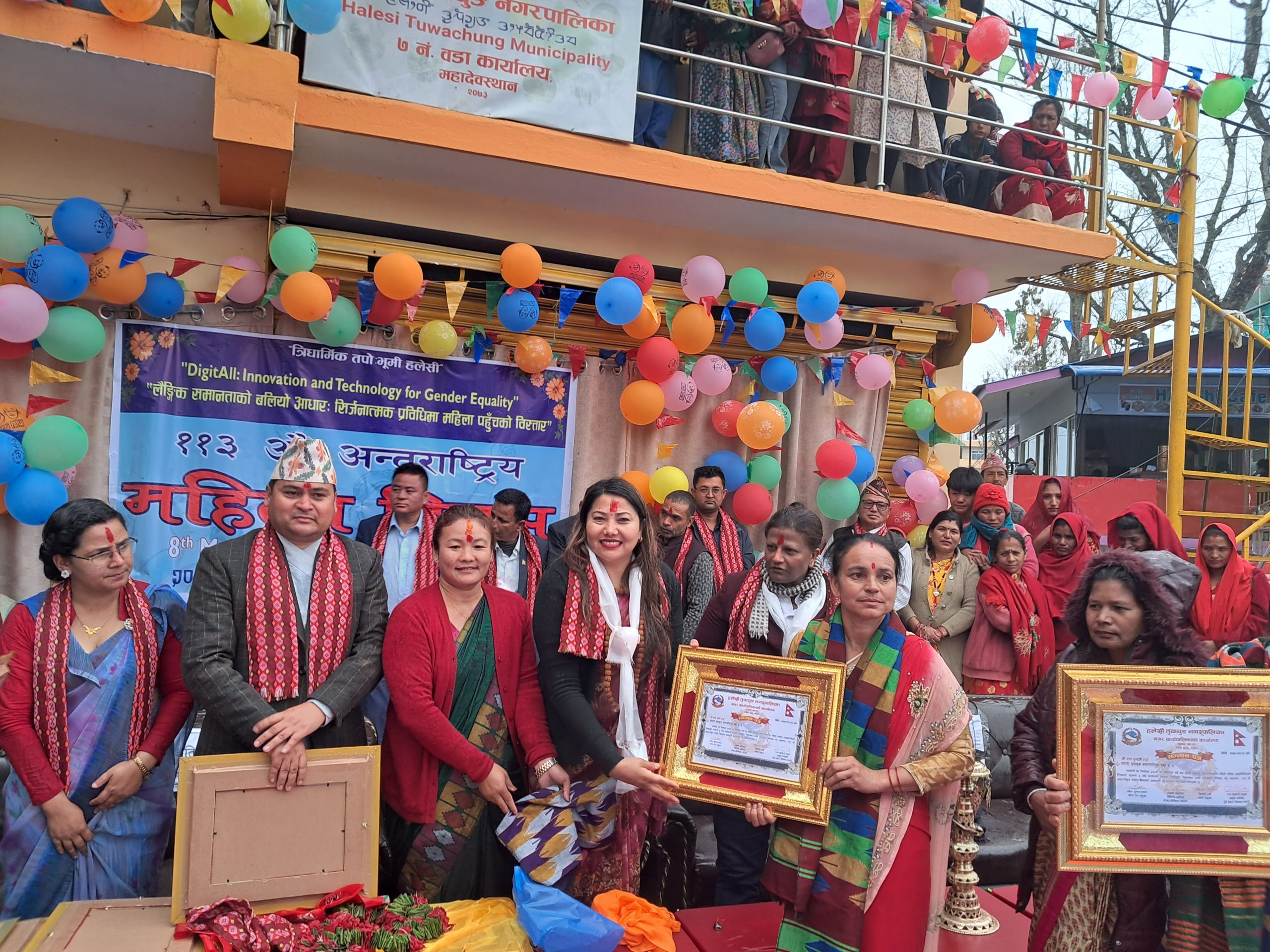 खोटाङ, फागुन २४ । खोटाङको हलेसी तुवाचुङ नगरपालिकाले १७ जना पूर्व महिला जनप्रतिनिधिहरुलाई सम्मान गरेको छ । १३३ औं अन्तर्राष्ट्रिय महिला दिवसको अवसरमा नगरपालिकाले बुधबार दोसल्ला ओढाएर प्रमाणपत्रले सम्मान गरेको हो ।