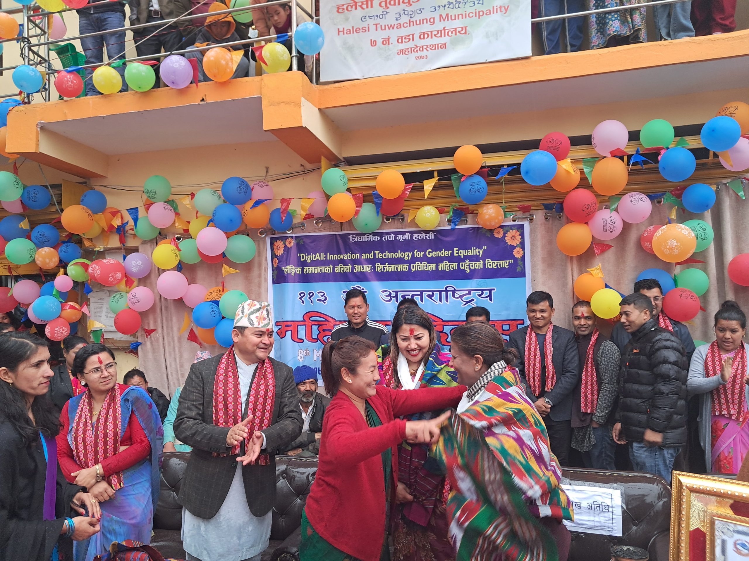 ०७४ मा भएको स्थानीय तहको निर्वाचनमा हलेसी तुवाचुङ नगरपालिकामा निर्वाचित कतीपय महिला जनप्रतिनिधि पछिल्लो समय हराइरहेकाले हौसलास्वरुप उहाँहरुलाई सम्मान गरिएको हलेसी तुवाचुङ नगरपालिका मेयर विमला राईले बताउनुभयो । पूर्व महिला जनप्रतिनिधिलाई सम्मानसँगै महिला दिवसको अवसरमा सचेतना मुलक ¥याली, कर्मचारीहरुको सामुहिक स्वागत नृत्य, झाँकी, तामाङ सेलो, साकेला नाँच, बालन, करातेको डेमो प्रदर्शनी लगायतका कार्यक्रम नगरपालिकाले आयोजना गरेको थियो ।