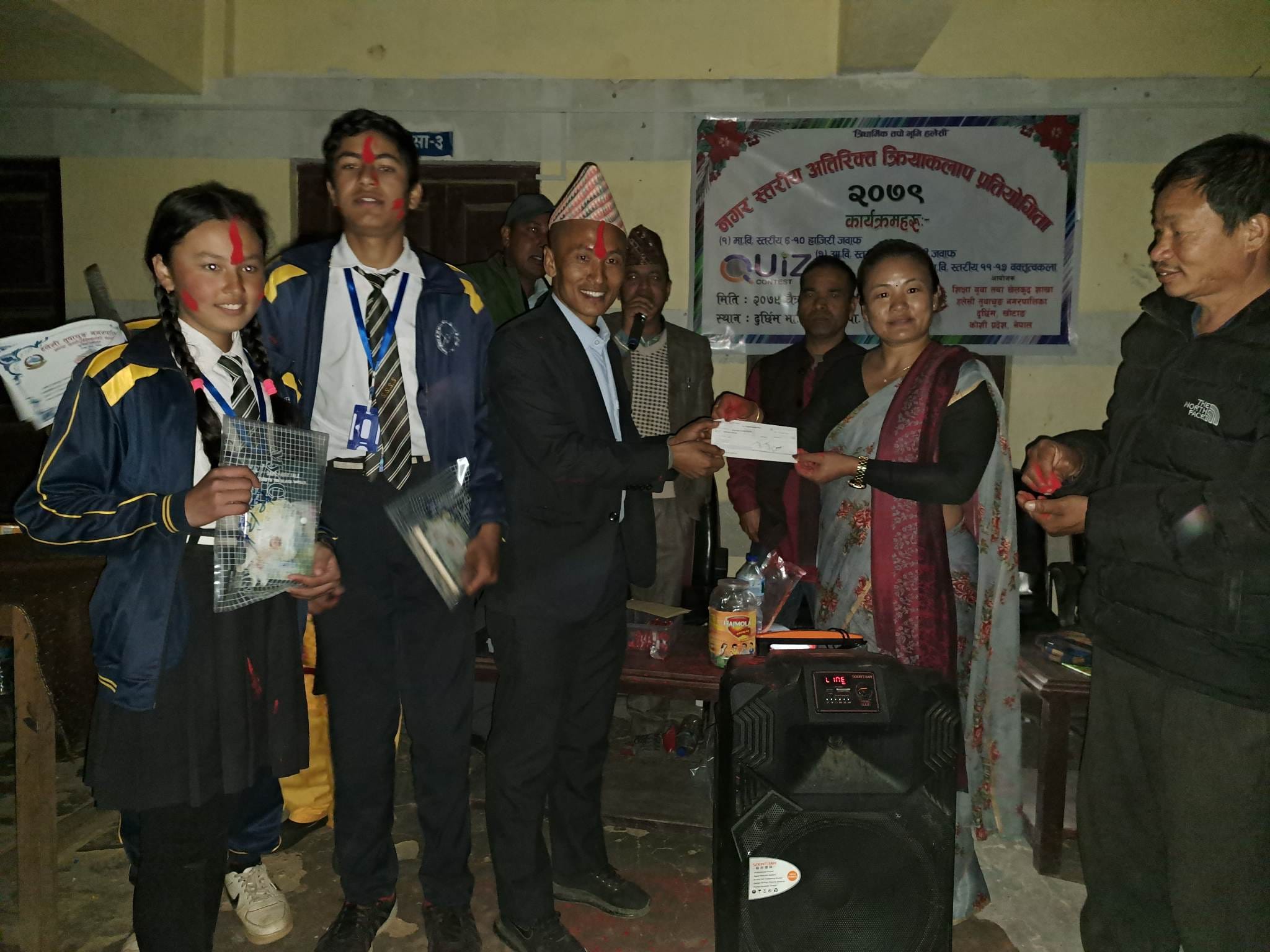 विजेता विद्यर्थीहरुलाई क्रमस ७, ६ र ५ हजारका दरले नगदसहित प्रमाणपत्र प्रदान गरिएको नगरपालिकाका शिक्षा शाखा प्रमुख पदम बहादुर कार्कीले बताउनुभयो । यस्तै, कक्षा १–५ सम्मका विद्यार्थीहरुको हाजिरजवाफमा प्रथम हुने बुलापन्थे मावि धितुङ र ६–१० सम्मका विद्यार्थीहरु बीच भएको हाजिरजवाफमा प्रथम हुने सरस्वती मावि अर्खौलेलाई हौसलास्वरुप नगद ५०/५० हजारले सम्मान गरिएको उहाँको भनाइ छ ।
