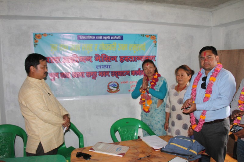 खोटाङ, जेठ २ । खोटाङको हलेसी तुवाचुङ नगरपालिका–७, महादेवस्थानका दुई आमा समुहलाई नगरपालिकाले कपास पेल्ने मेसिन प्रदान गरेको छ । व्यवसायिकरुपमा कपास उत्पादन गर्दै आएका महादेवस्थानका जुन तारा आमा समुह र गोदाबारी आमा समुहलाई नगरपालिकाले मंगलबार कपास पेल्ने मेसिन हस्तान्त्रण गरेको हो ।