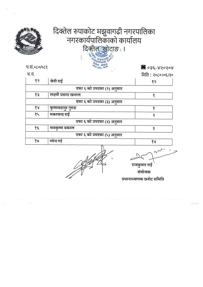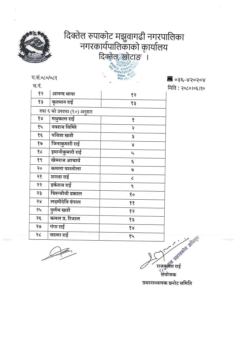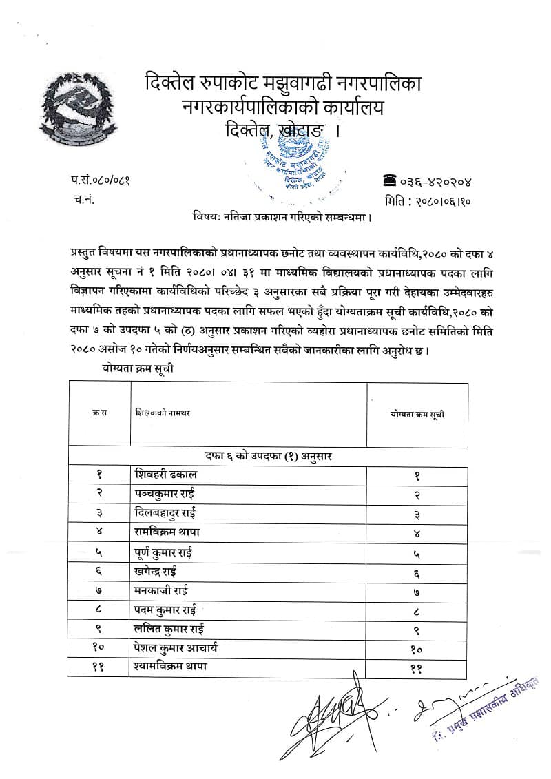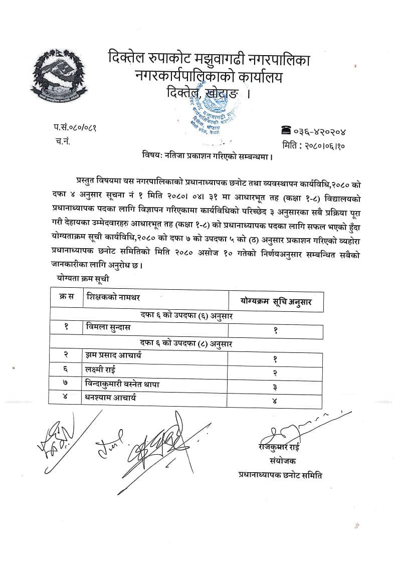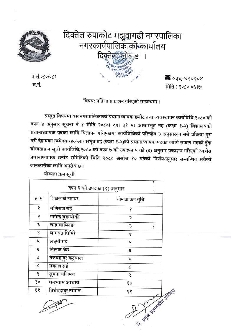 प्रधानाध्यापकमा छनोट भएका शिक्षकहरु यस प्रकार छन् ।